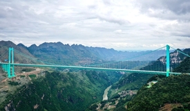 现场直击:96辆试验卡车驶上花江峡谷大桥