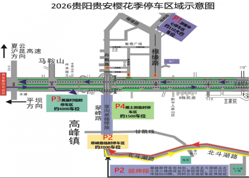 3月7日起,贵安樱花园周边道路交通组织有调整!附绕行路线及停车区域→